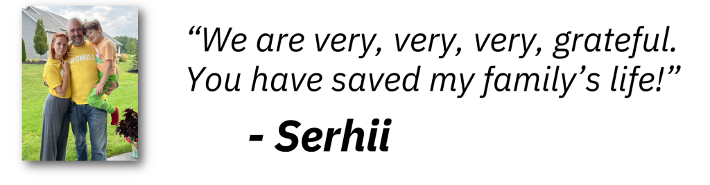 Update 08.26.2023 | “We are very, very, very, grateful. You have saved my family’s life!” - Serhii