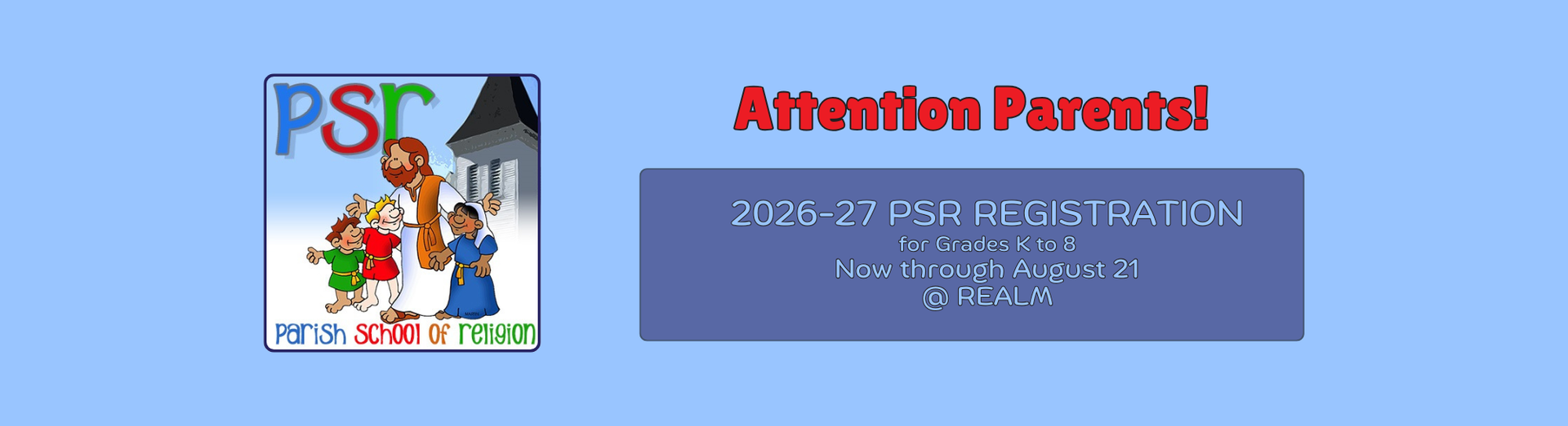 We would love to welcome you to our church. Join us for a Mass, learn more about our parish and register with our church using the buttons shown.